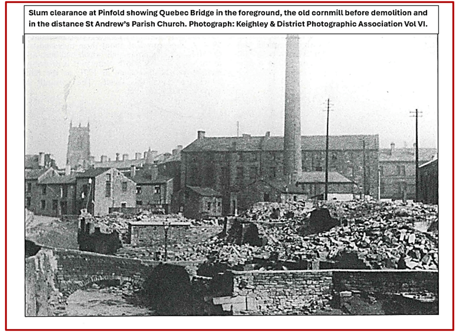 Slum clearance began in the 1930s and went through stages up to the 1970s. In Keighley, much early housing was cleared when the Housing Act of 1930 allowed for compulsory purchase of the proven inadequate housing for demolition. Jude highlighted the destruction of community in the process, however, and some members of the audience noted Parkwood in the 1960s. Not everyone wanted to leave their homes, improvement yes, not demolition and rehousing. Stories from the audience included a de-lousing procedure for inhabitants of “slum dwellings” before access to alternative housing was permitted. Dr Ian Dewhirst MBE in “A History of Keighley”, page 132, highlights the loss of “landmarks in the folk-geography of generations: the Bay Horse Inn and the Angel… the picturesque Quaker meeting-house in Mill Street; the pinfold where stray livestock had been impounded; hump-backed Quebec Bridge, scene of many a Saturday-night brawl…”