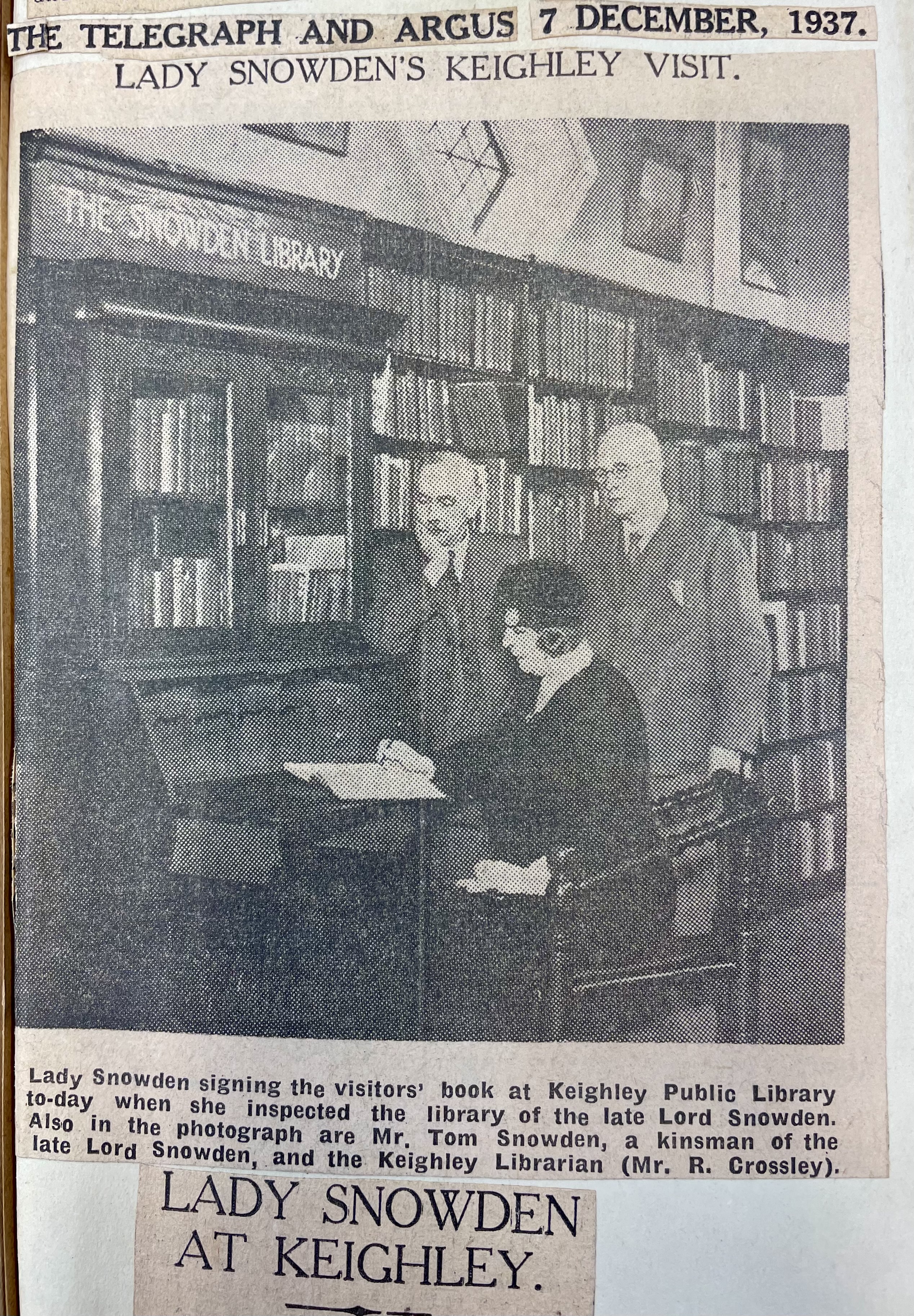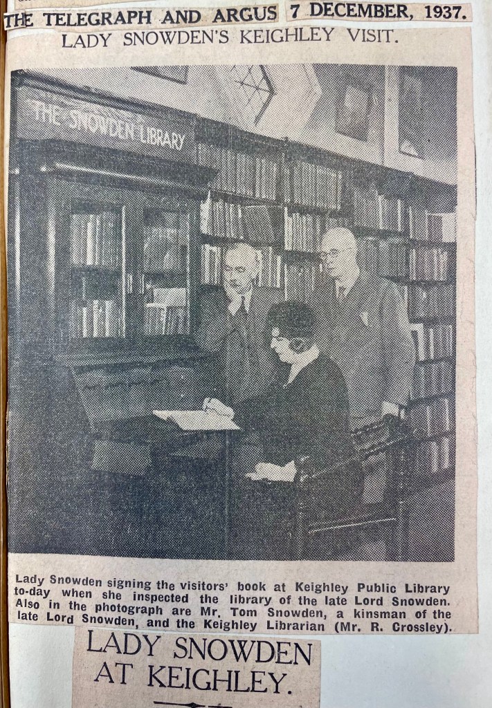 The town had obviously made an impact on her husband for it was to Keighley library that Lady Ethel Snowden gave his 3,000 strong collection of books along with his writing desk. Her books joined those of her husbands on her death in 1951.