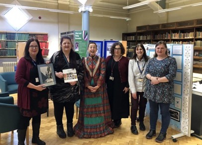 International Women’s Week in Keighley Local Studies Library was celebrated with another popular talk by Irene Lofthouse in full costume. Over 50 people ignored any remaining difficulties of ice and snow to hear about some of the inspirational women of Keighley at the turn of the century.