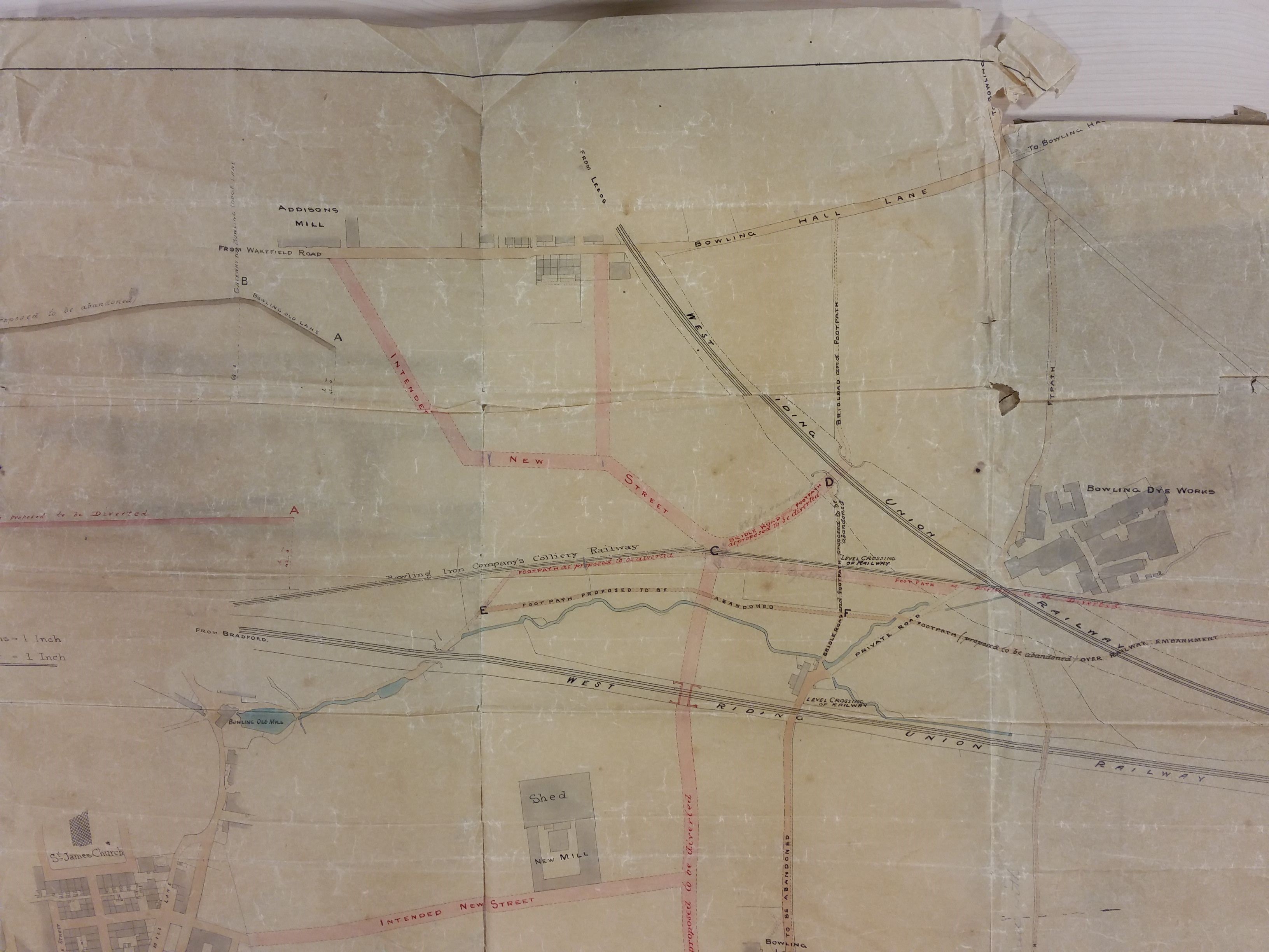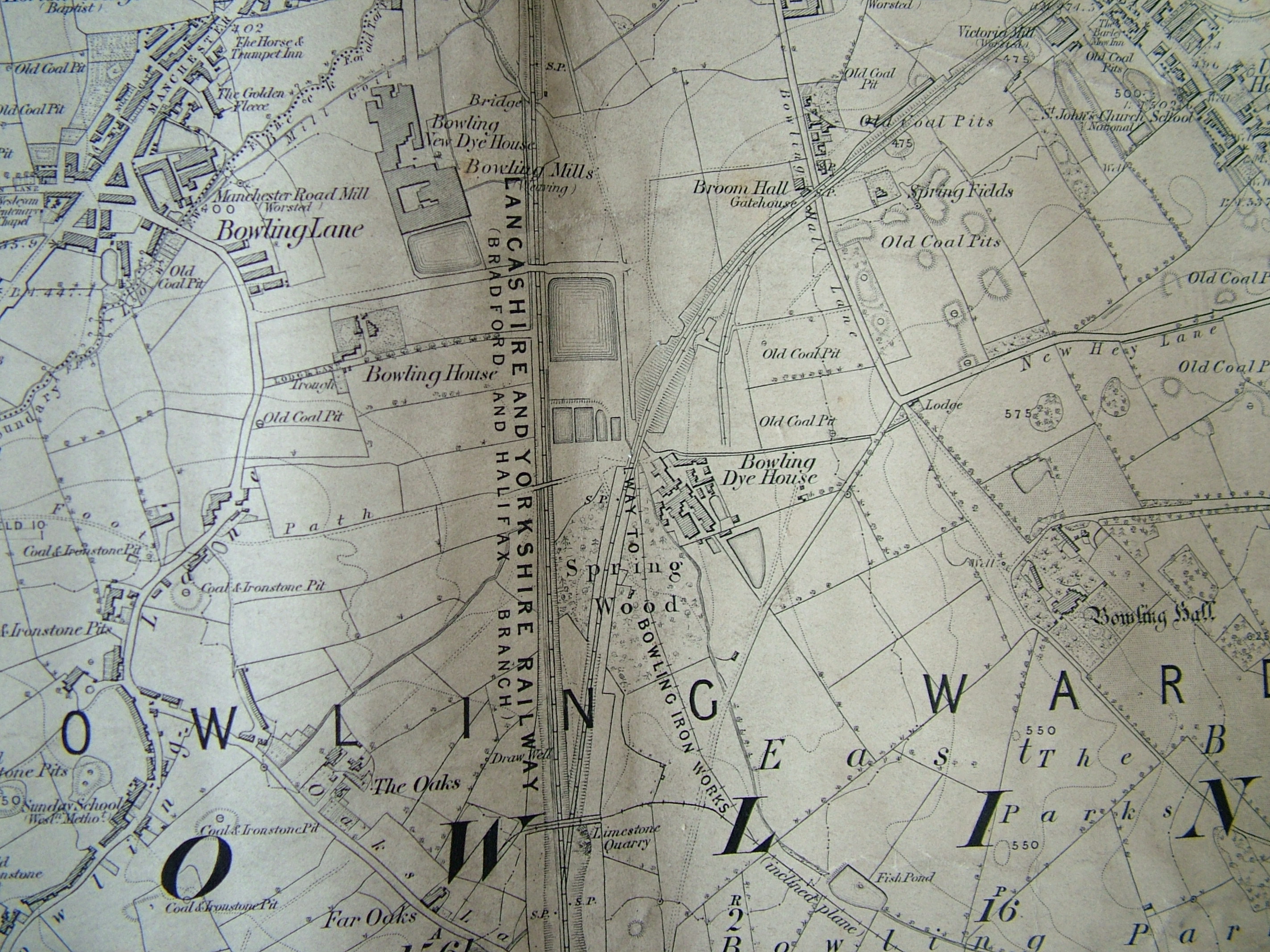 I’m not really a railway enthusiast so I must start with an apology to those readers who are, and say that I would welcome your guidance. I don’t find the early history of Bradford’s rail links an easy topic since the companies involved seem to change their names, and move the location of their stations, quite frequently. Naturally the creation of early railway lines generated maps and plans, many of which have survived. Even here I have a problem since tracks appear on maps which are notionally of an earlier date. Despite these difficulties I want to describe the early lines entering Bradford from the south because of the interesting light they shed on the city’s industrial past.