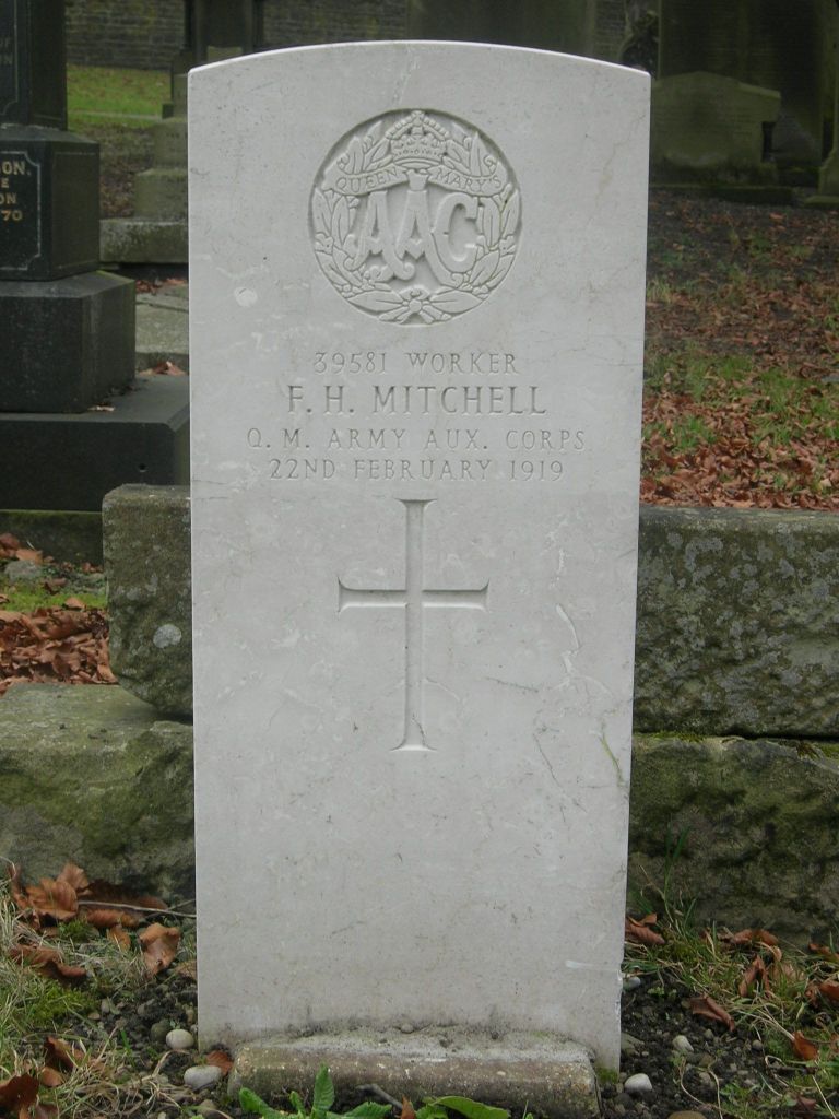 ‘Wkr. Frances Hildred Mitchell died at the hospital, ‘N’ Lincs, Brocton Camp, Staffs, on 22.2.19. The cause of death is not stated.’