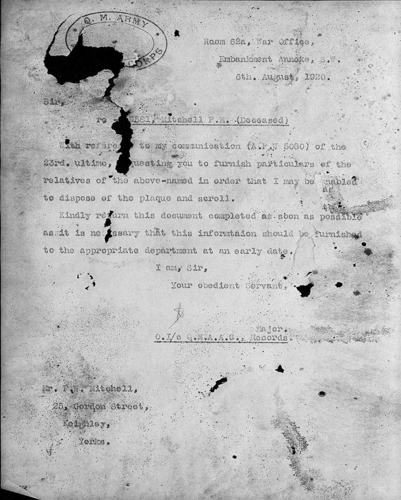 Frances’s father, as next of kin, received a letter dated 1st March 1919, stating: